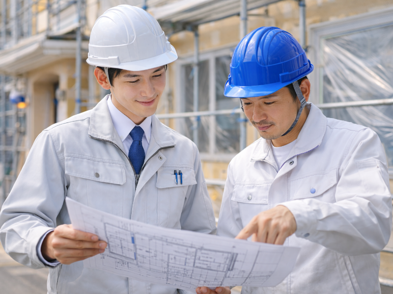 マニュアル通りに施工されているかを確認し、新築住宅に傷や汚れがないか、近隣への配慮や現場の整理整頓、丁寧な作業が保たれているかをチェックします。
