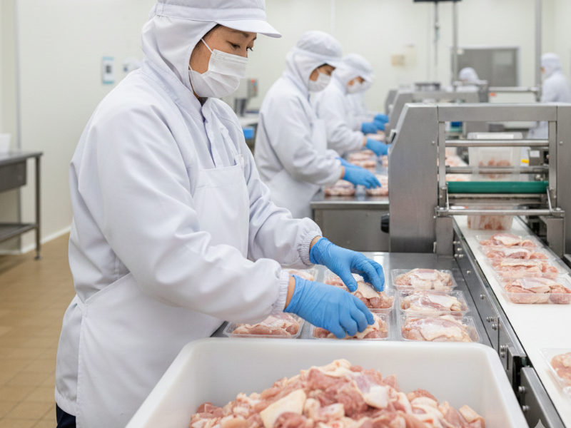 - 食品工場内で、スーパーなどで販売されている鶏肉のパック詰め・印字チェックを行う軽作業です。