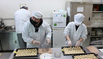 ・作業活動(四つ葉のバターを使ったクッキー作り(数種類)や染め布、さをり織りなどの作業)の支援