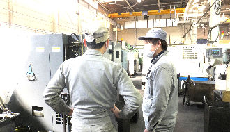 まずは金属材料を機械にセットしたり、機械のボタンを押すなどの簡単な作業からスタート!