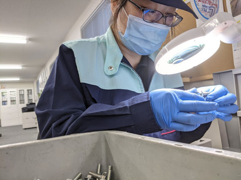 - 部品のキズや不良をチェックする選別作業
