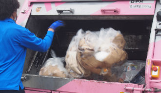 8:45 ゴミ収集車に乗車し、収集場所へ移動