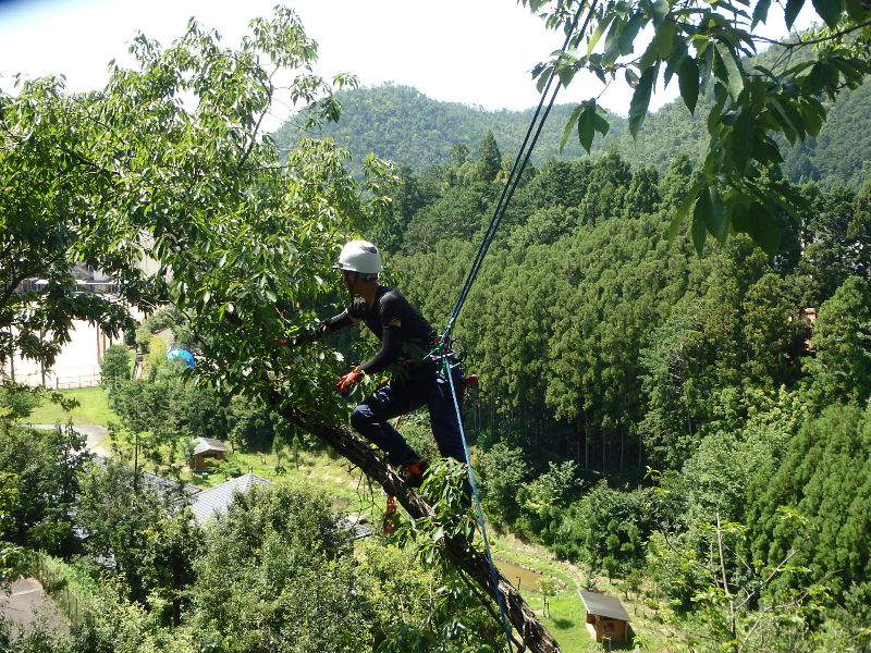 樹木に関する幅広い業務を行うスペシャリストである『アーボリスト』の育成を目指し、ロープクライミングでの樹上作業も行います。