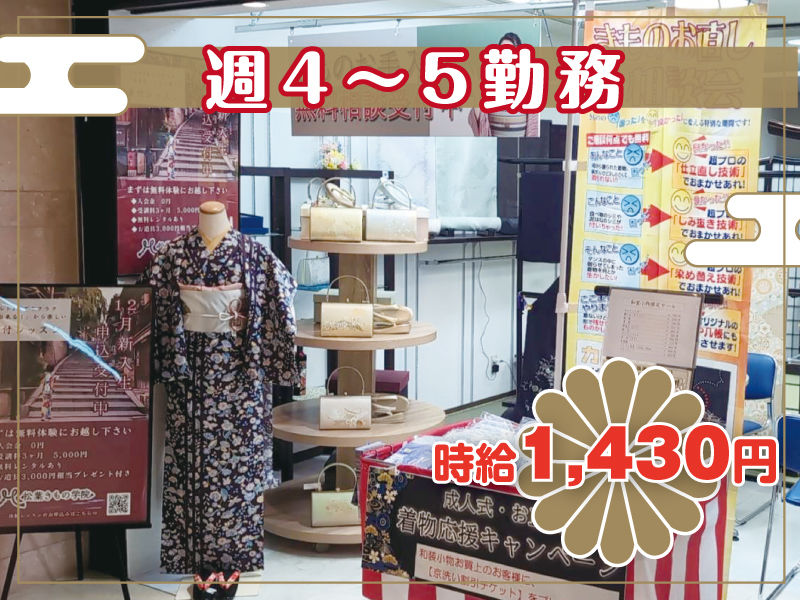 - 着物の販売・運営スタッフ募集!未経験からスタート可!1日6.5h~、週4日~週5日勤務で働きませんか?