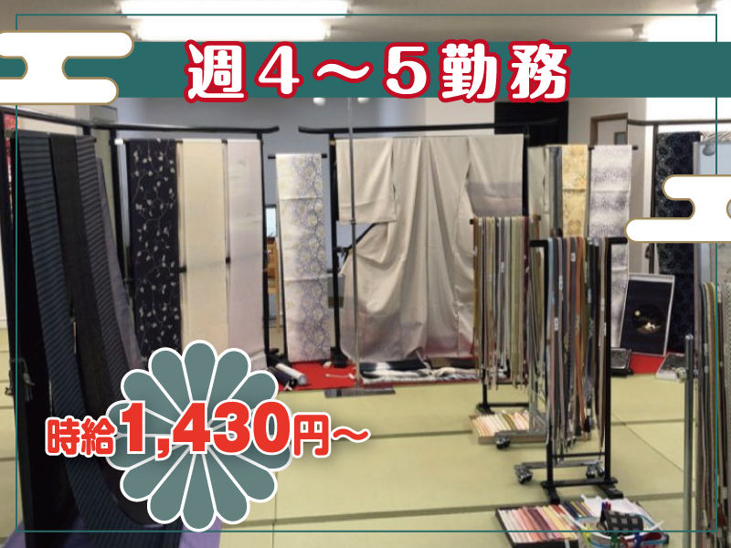 - 【昨年10月に移転オープン】着物店の販売スタッフ募集!駅チカで通勤ラクラク!週4日~OK!着付けスキルが身につく!