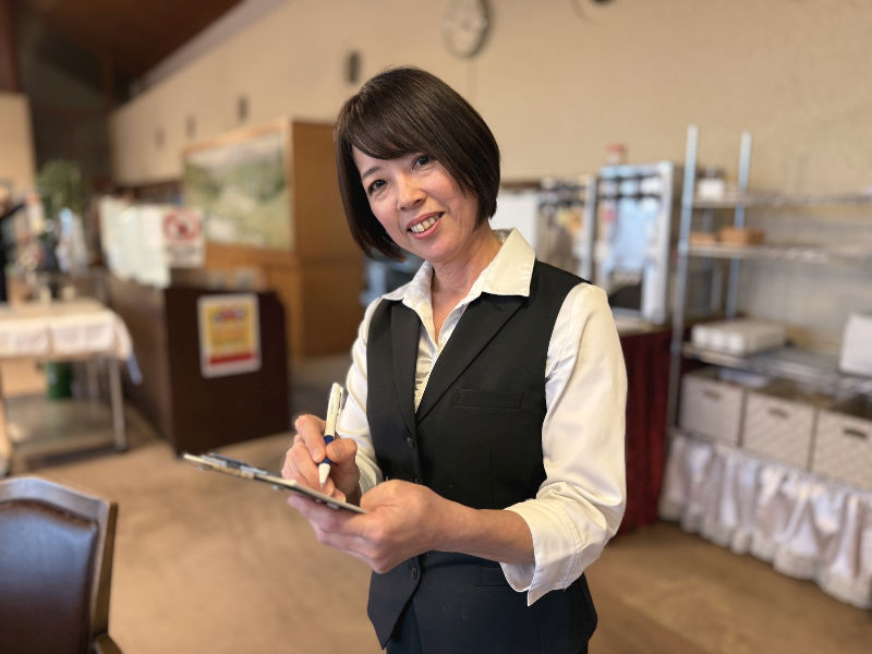 お客様を席へご案内し、注文を受けます。