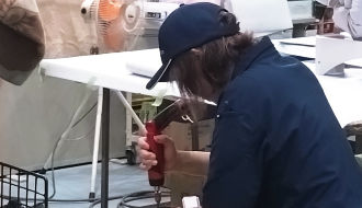 工場内での作業ですが、夏は空調服、