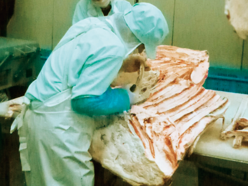 枝肉から骨を外し、部位ごとに分ける作業