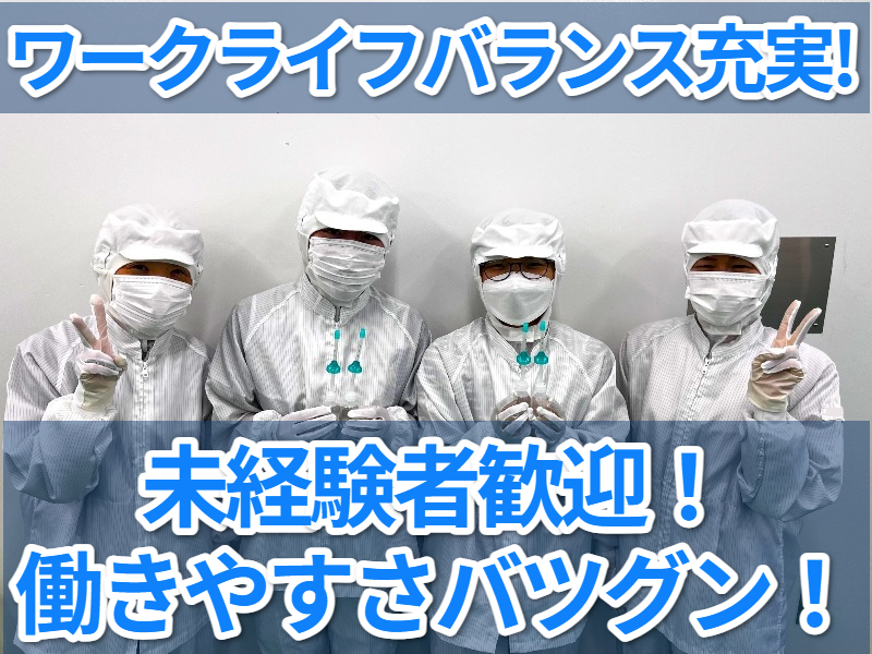 ムネ製薬株式会社では福利厚生の充実に向けて積極的に取り組んでいます。当社は1年単位で仕事量(製品の生産量)が決まっているので、急に業務が忙しくなったり、急な残業をお願いする事はありません。今働いている方は8割が女性の方です。子育て中の方にも働きやすい環境ですので、ご興味ある方はお気軽にご応募ください。「まずは職場見学だけ」も承ります。