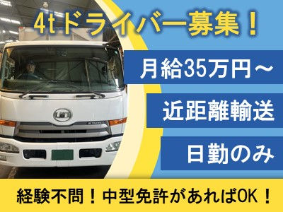 - 近距離配送の4t中型ドライバー/日勤のみ