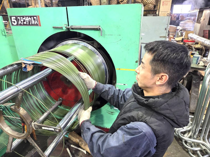 製造機械への材料セットから梱包作業までカラーワイヤの生産工程について、丁寧にお教えいたします。