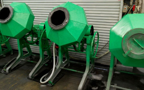 ①バレル研磨機械に、製品・研磨石・研磨剤・水を入れ、時間の設定をし機械のスイッチを入れる。