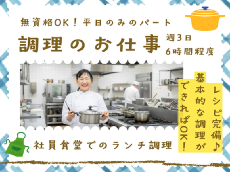 - 社員食堂で調理のお仕事/平日のみ