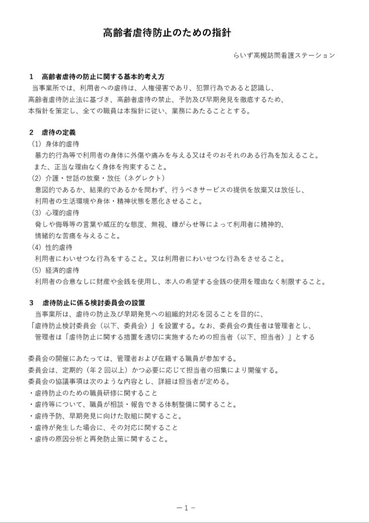 らいず高槻訪問看護ステーション|大阪府高槻市 [虐待防止の指針]