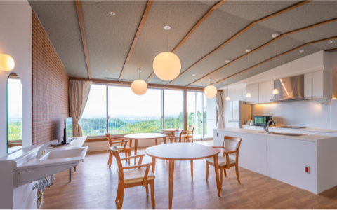 施設の大きな特徴は、雄大な自然環境を活かした取り組みです。四季の彩りを大切にした季節ごとのイベントは五感にやさしく、利用者さまやそのご家族の交流を促進しています。