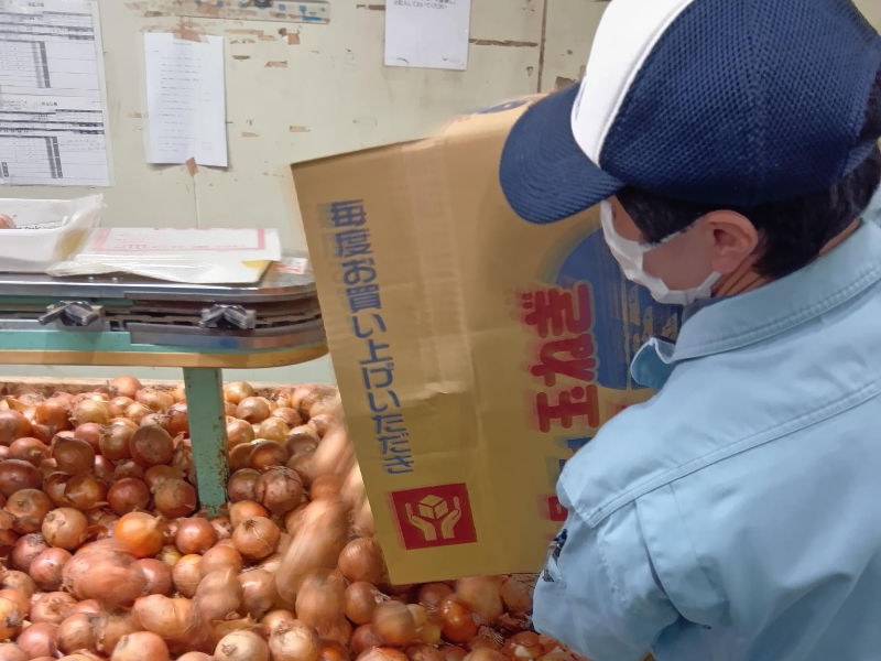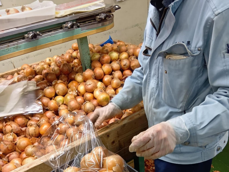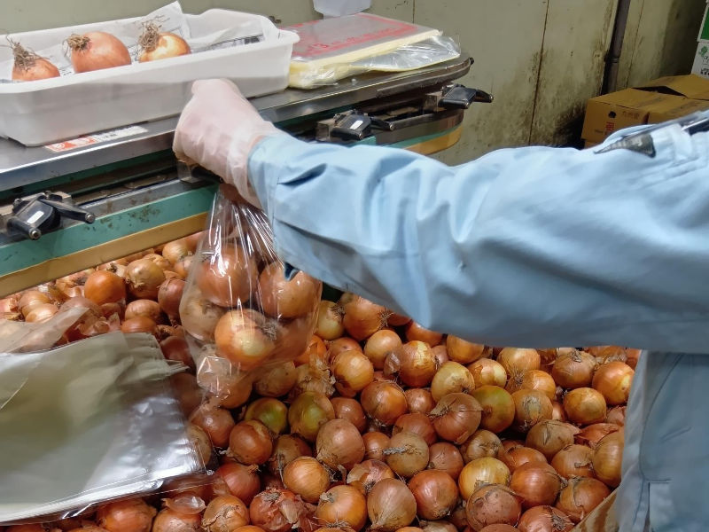 - 青果物の袋詰め作業(たまねぎ・じゃがいも・果物類などがメインです)