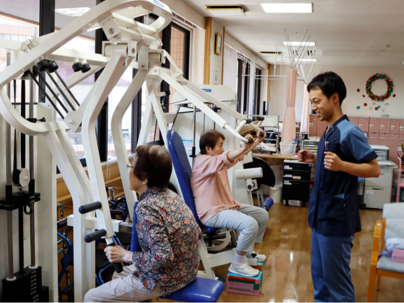 - 介護老人保健施設の入所者さまや利用者さまに対し、在宅復帰を目指したリハビリ業務を行います。