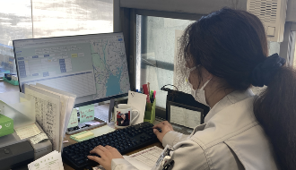 入社後すぐは電話対応や伝票作成、運転手に配送先の道案内などを担当していただきます。