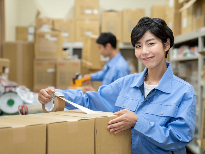 - 工場内での組立、梱包作業スタッフ
