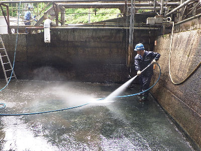 浄水場・水処理設備(ろ過材入れ替えも行う)などいろいろな設備の清掃・洗浄を行っています。