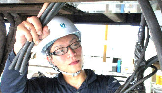 電車の床下や車内に新たに設置した電気機器が正しく作動するように配線・結線を行います。