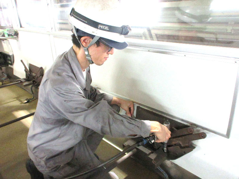 「塗装」「台枠」「内装」「電装」「配管」と、様々な業務を一通り体験していただきます。