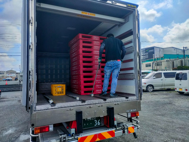 物流センターで積み込み、関東一円・他近隣エリアの大手スーパー様へ届けていただきます。