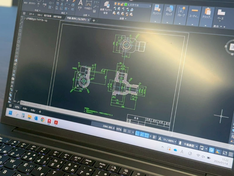 ・事務所にてCAD図面の作成