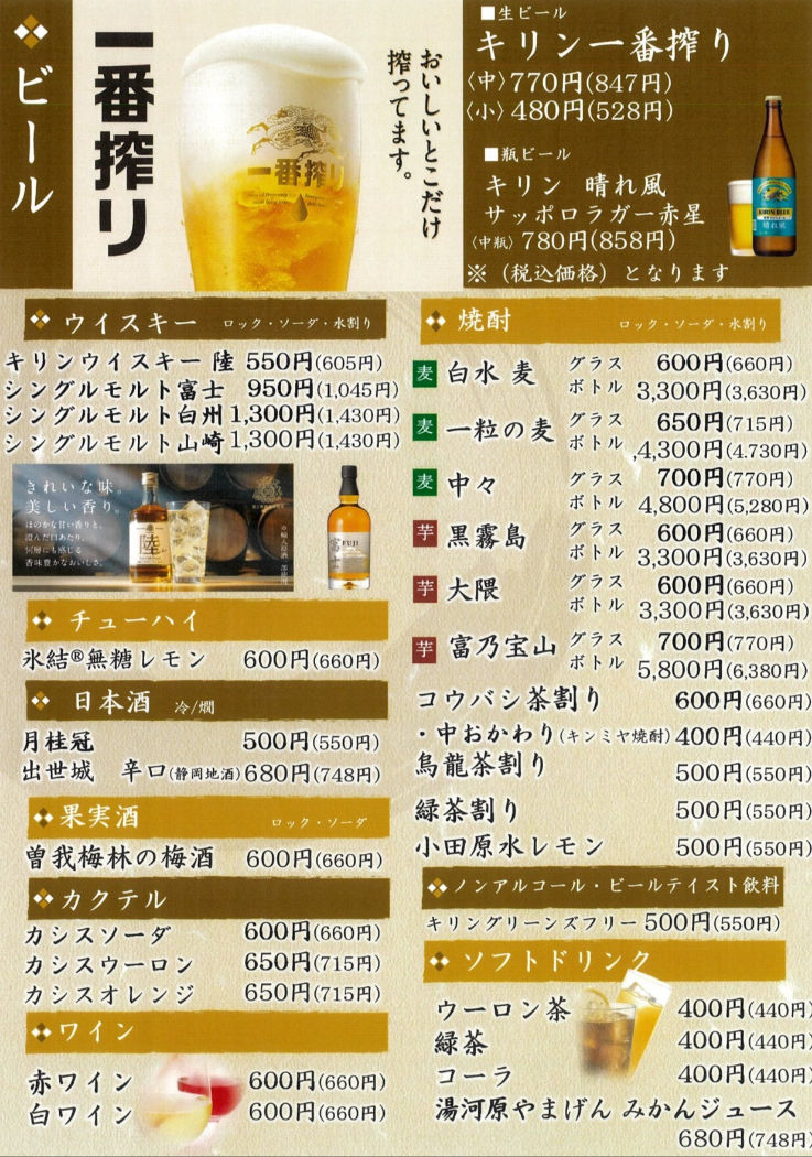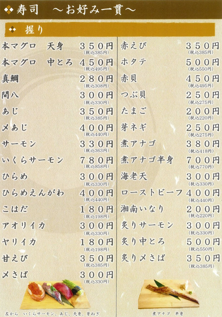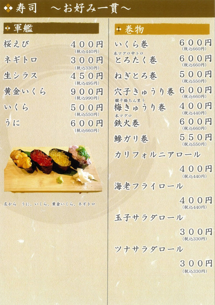 [寿司・お飲み物メニュー]