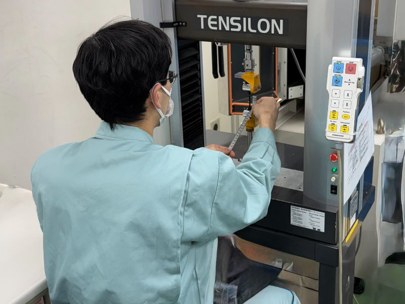 シリコーンゴムの「硬さ」「伸び」などの物性評価を行います。