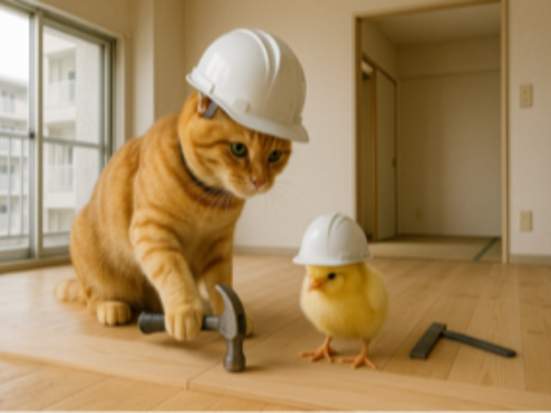 - 根太組み、床張り、棚取付、CF張り、コーキング…