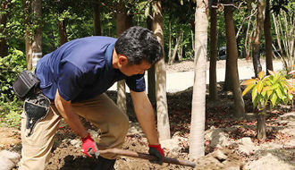 そのあと徐々に・根巻き・植え込み・剪定など専門的なスキルを習得していただきます。