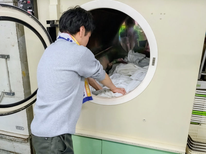 - クリーニング工場内で主に老人福祉施設や病院から回収した衣類の選別作業